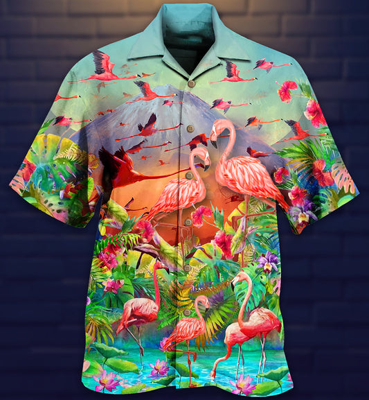 Flamingo Couple Love Flowers - Beach Short Hawaiian Print