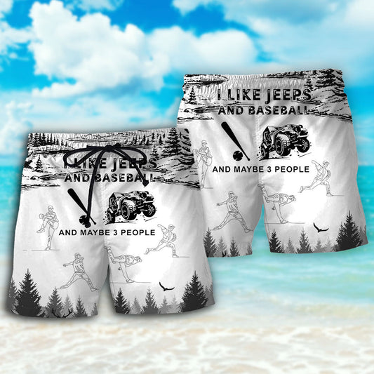 Hawaiian Print Baseball I Like Jeeps And Baseball - Beach Short