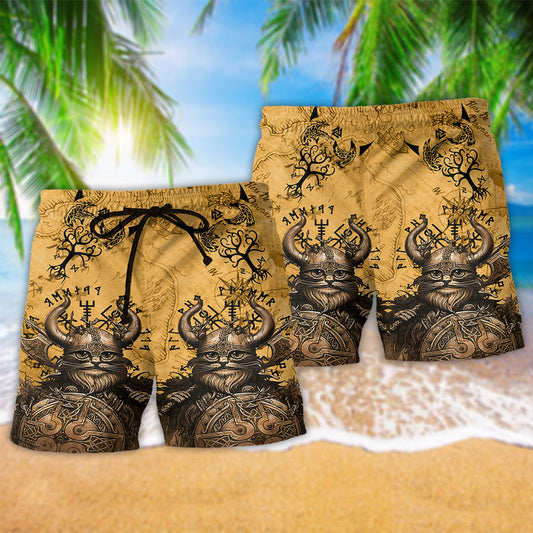 Viking Good Meows Go To Heaven Bad Meows Go To Valhalla - Beach Short Hawaiian Print