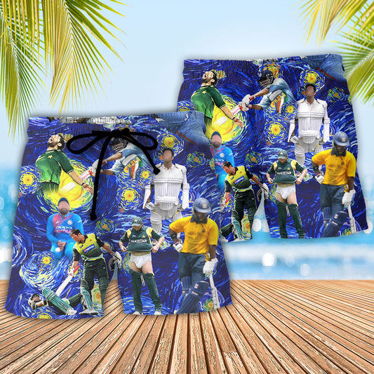 Cricket Sport Funny Play Tropical Art Style - Beach Short