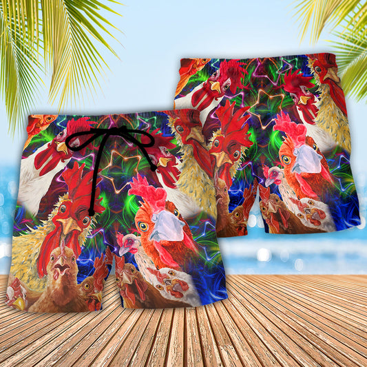 Chicken Rooster Shamrock Good Luck – Beach Short