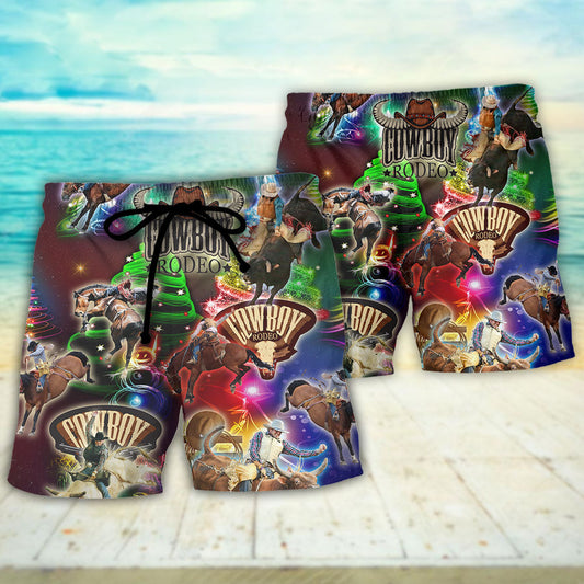 Cowboy Rodeo Neon Merry Christmas - Beach Short