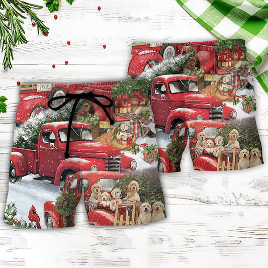 Christmas Red Truck Tree And Puppy – Beach Short