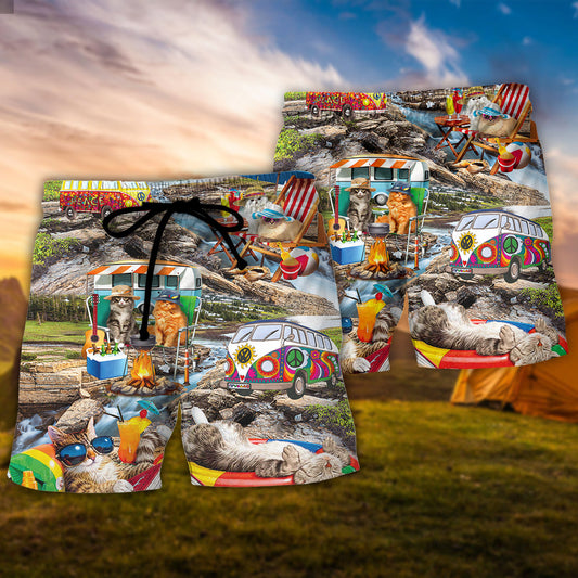 Camping Funny Cat Chilling This Is My Camping Shirt - Beach Short Hawaiian Print
