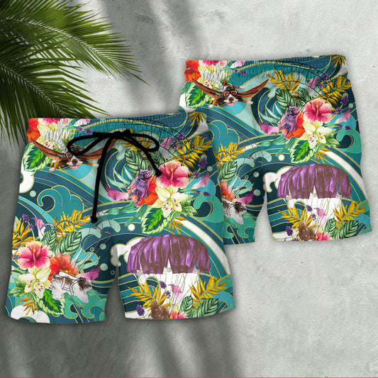 Barbecue Funny BBQ Beer Meat Smoking Pork Pulling Chicken Jerking Butt Rubbing BBQ Pit Master - Beach Short Hawaiian Print