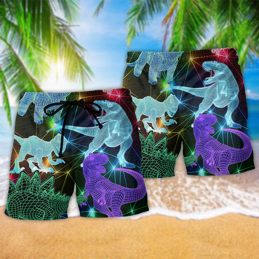 Dinosaurs Neon Full Color Dinosaur - Beach Short
