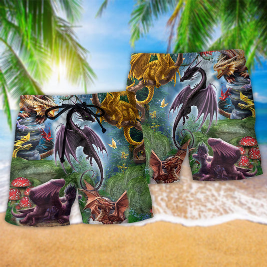 Dinosaurs Merry Xmas Colorful - Beach Short