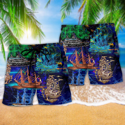 Ship Ocean Life Ship Quote Neon Art - Beach Short