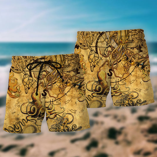 Vintage Octopus Treasure Hunt Nautical Art – Beach Short