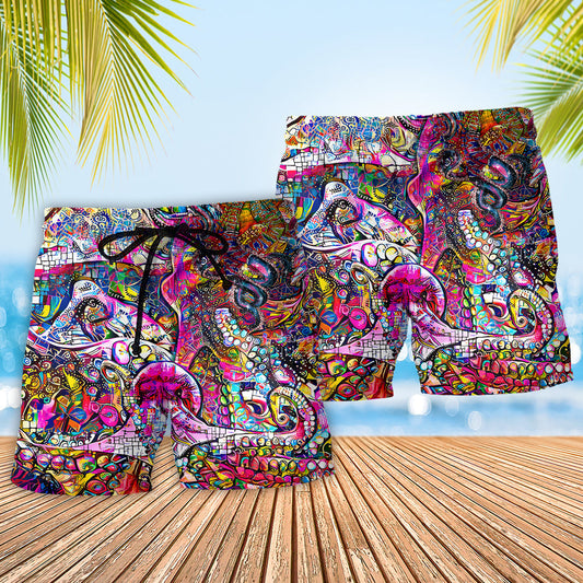 Whimsical Psychedelic Octopus Art – Beach Short