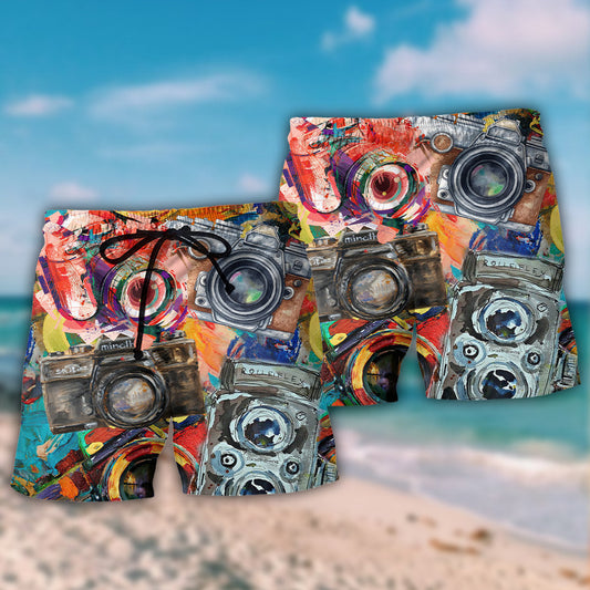 Vintage Camera Retro Colorful Art – Beach Short