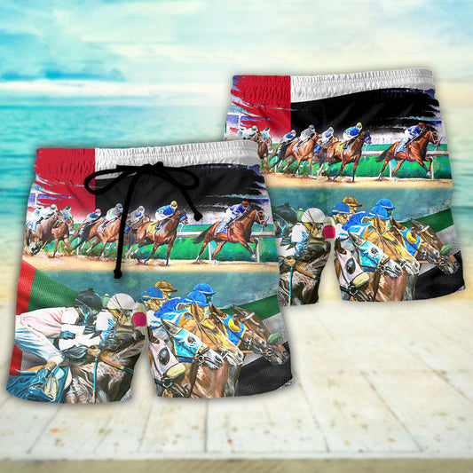 Horse UAE Flag Horse Racing Amazing Seat Lover Art - Beach Short Hawaiian Print