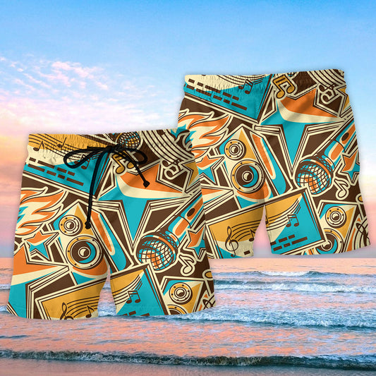 Vintage Karaoke Colorful Music Lover – Beach Short