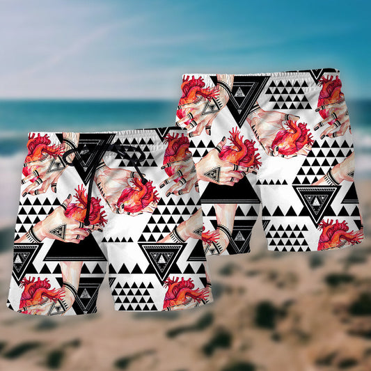 Skull Rose And Ram Artistic Symbol – Beach Short