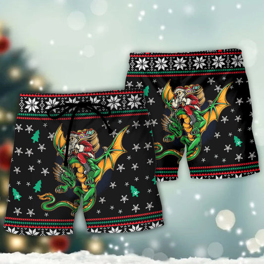 Christmas Santa Fantasy Dragon Art – Beach Short