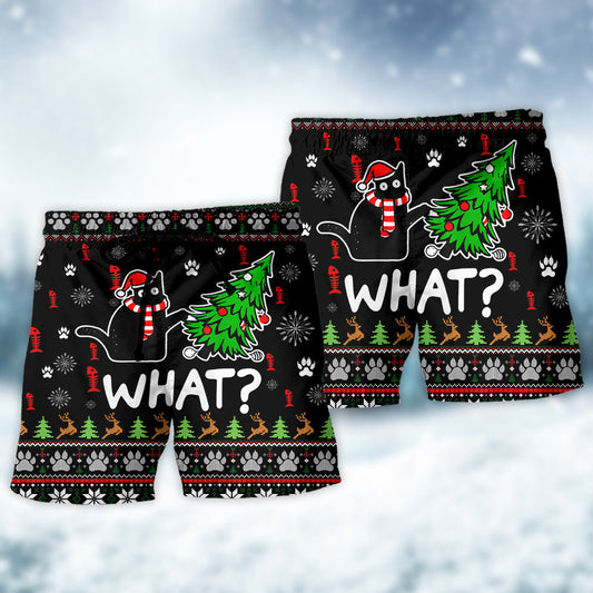 Cat Wreck The Tree Funny Ugly Style Christmas - Beach Short