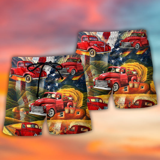 Tractor Independence Day Watercolor Tractor US Flag - Beach Short