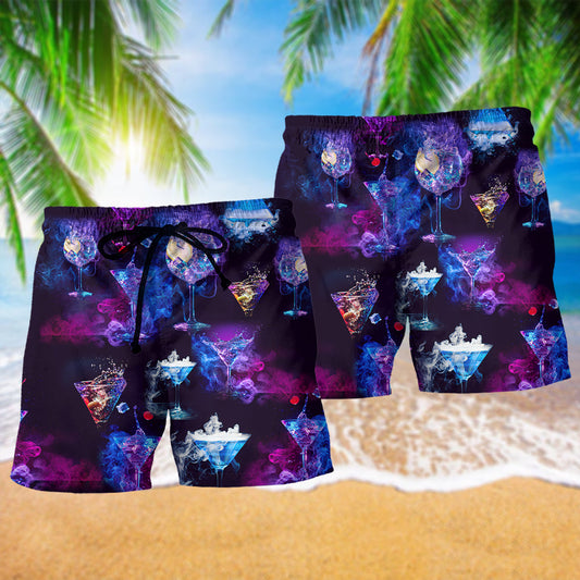 Cocktail Love The Moon Purple - Beach Short Hawaiian Print