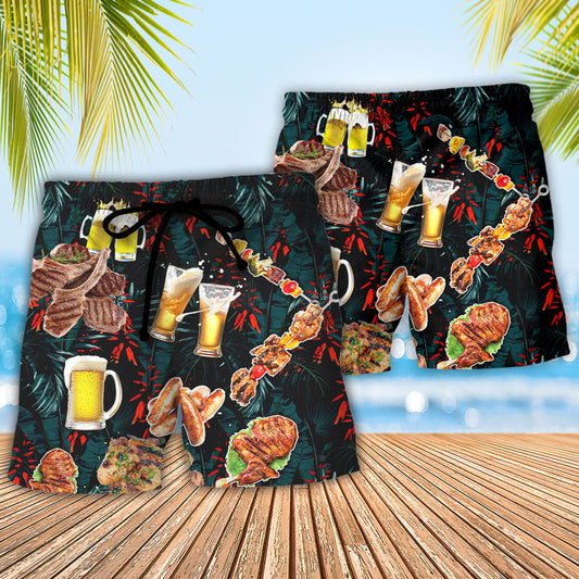 Barbecue Food BBQ Meat Once You Put My Meat In Your Mouth You're Going Want To Swallow BBQ - Beach Short Hawaiian Print