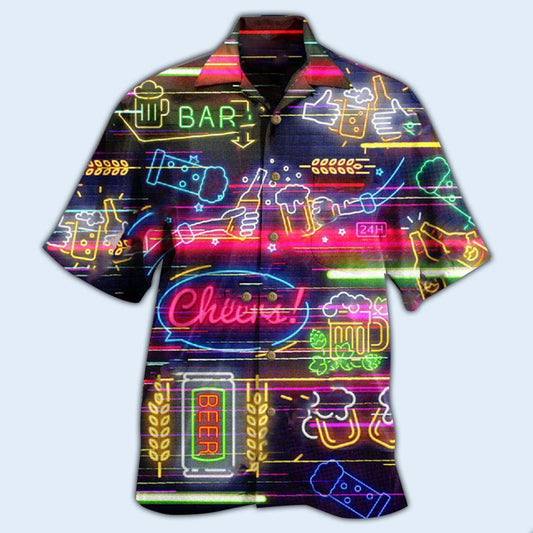 Beer Christmas Neon Art Drinking - Hawaiian Shirt