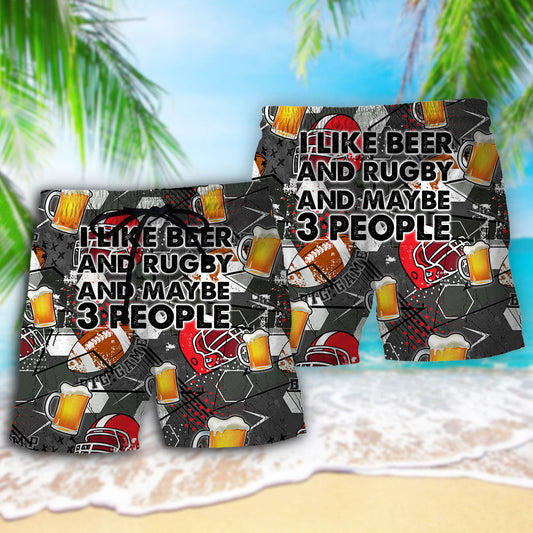Beer I Like Beer And Rugby And Maybe 3 People Funny Quote - Beach Short