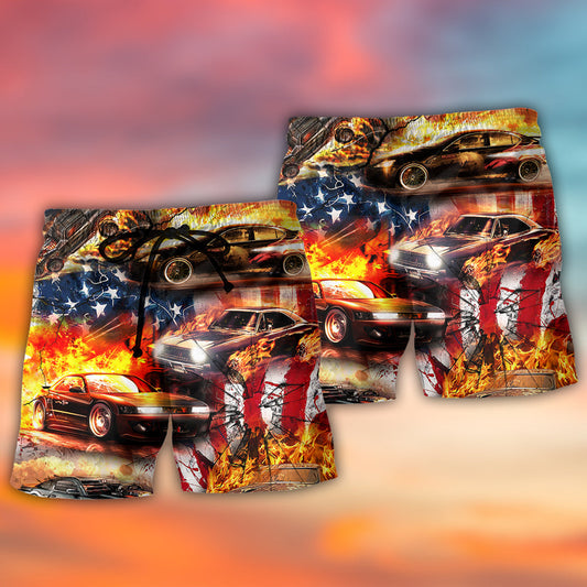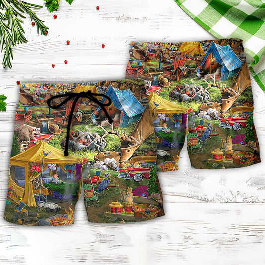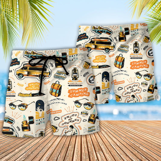 Camping Van Wild Outdoor Life Custom Photo - Beach Short
