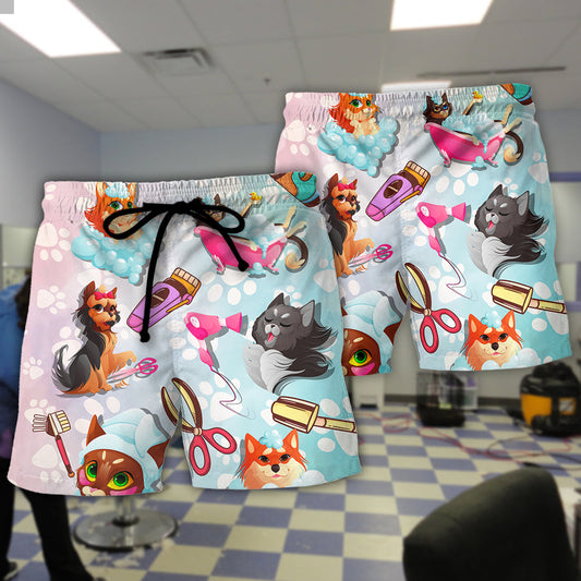 Grooming Saved Me Funny Pet Groomer Quote Dog Cat Lover - Beach Short