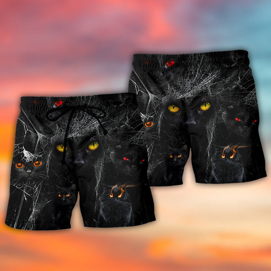 Halloween Black Cat Pattern - Beach Short Hawaiian Print