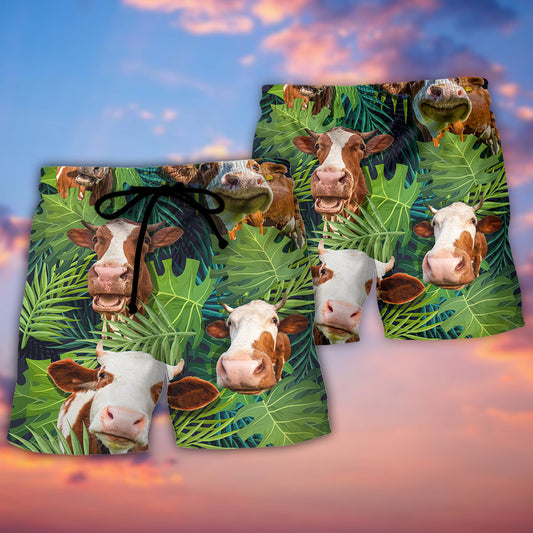 Cow Face Funny Troll Cattle Tropical Style - Beach Short