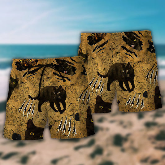 Haunted Black Cat Dark Night Art – Beach Short