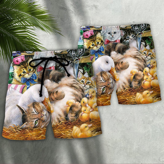 Ducks And Cats Cute Animals – Beach Short