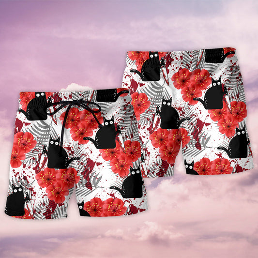 Black Cat With Red Stain Art – Beach Short