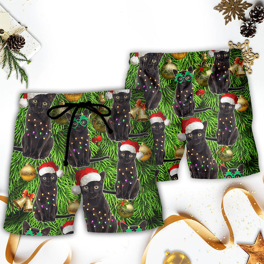 Black Cat Merry Christmas Holiday - Beach Short
