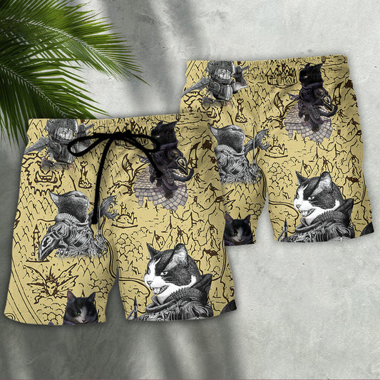 Cat Warrior Strength Art - Beach Short