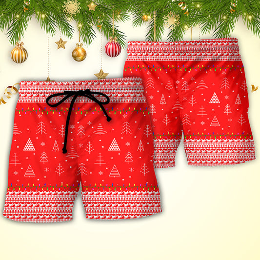 Cat Wreck The Tree Christmas Red Theme - Beach Short