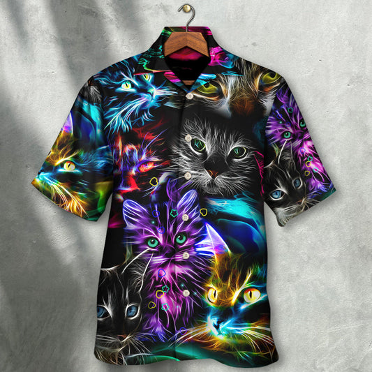 Cat Funny Neon Light Colorful Style - Hawaiian Shirt