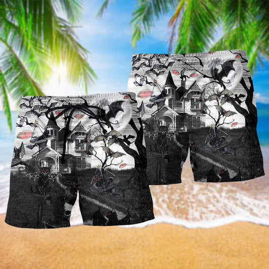 Halloween Flying Cats - Beach Short Hawaiian Print