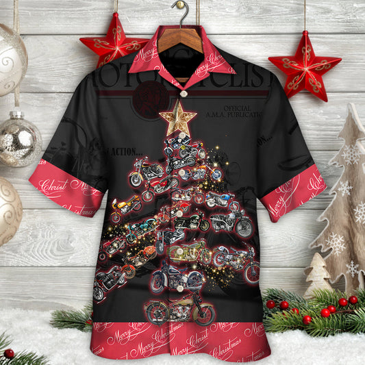 Christmas Motorcycle Tree Retro Style - Hawaiian Shirt