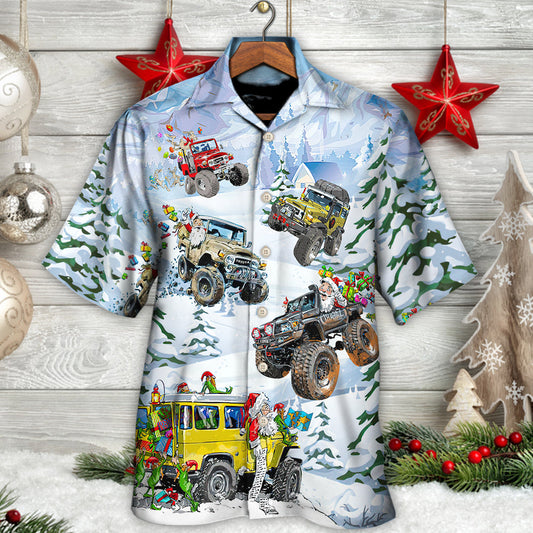 Christmas Santa Riding Monster Jeep - Hawaiian Shirt