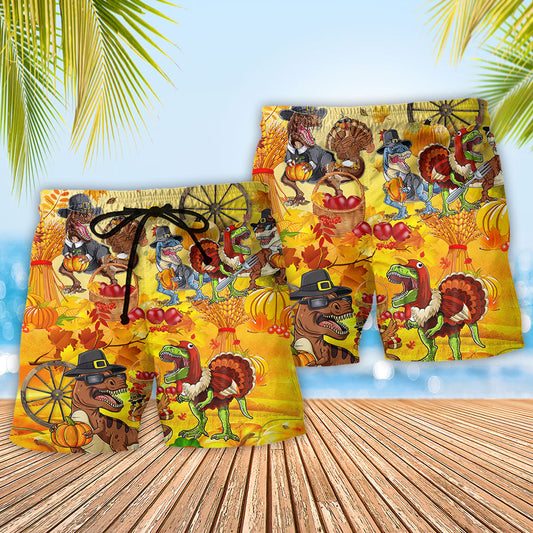 Dinosaur Thanksgiving Funny Art – Beach Short