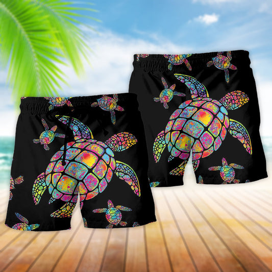Turtle Love Ocean Hippie Black Style - Beach Short
