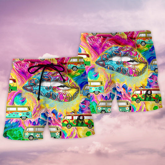 Hippie Love Lovely Life - Beach Short Hawaiian Print