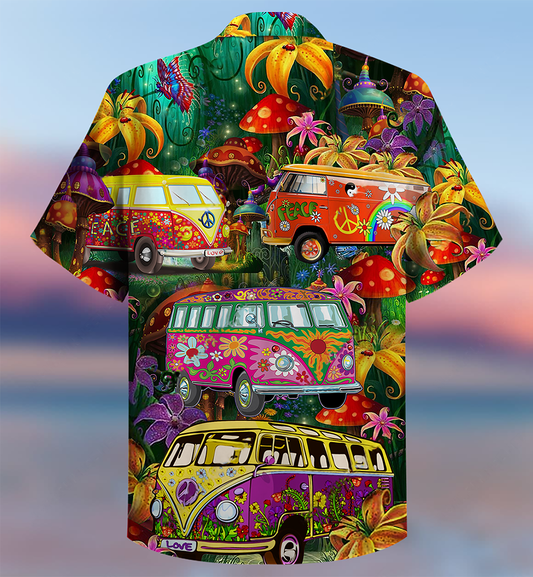 Colorful Hippie Bus Peace Life Vintage Style - Hawaiian Shirt