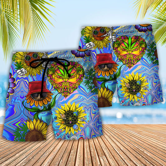 Hippie Sunflowers Stay Trippy Art - Beach Short