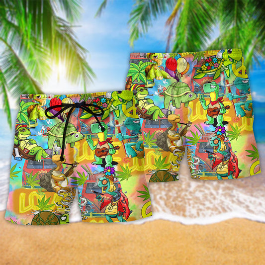 Hippie Turtle Peace Life Colorful So Funny - Beach Short Hawaiian Print