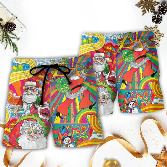 Hippie Santa Merry Xmas - Beach Short Hawaiian Print