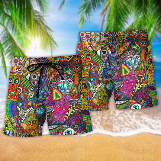 Colorful Hippie Mushroom Fantasy Art – Beach Short