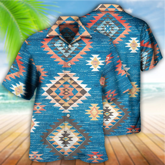Native Style Love Peace Blue Pattern - Hawaiian Shirt