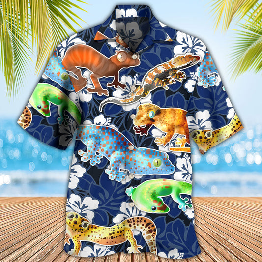 Leopard Gecko Blue Tropical Flower - Hawaiian Shirt