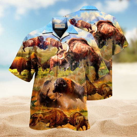 Animals Bison In Wild Battle Limited Edition – Hawaiian Shirt
